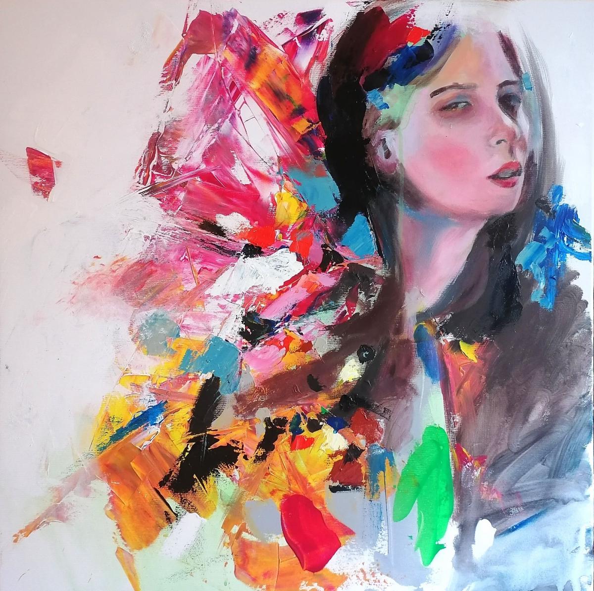 L'opera è realizzata in acrilico e olio su tela, con certificato di autenticità e firma sul retro.