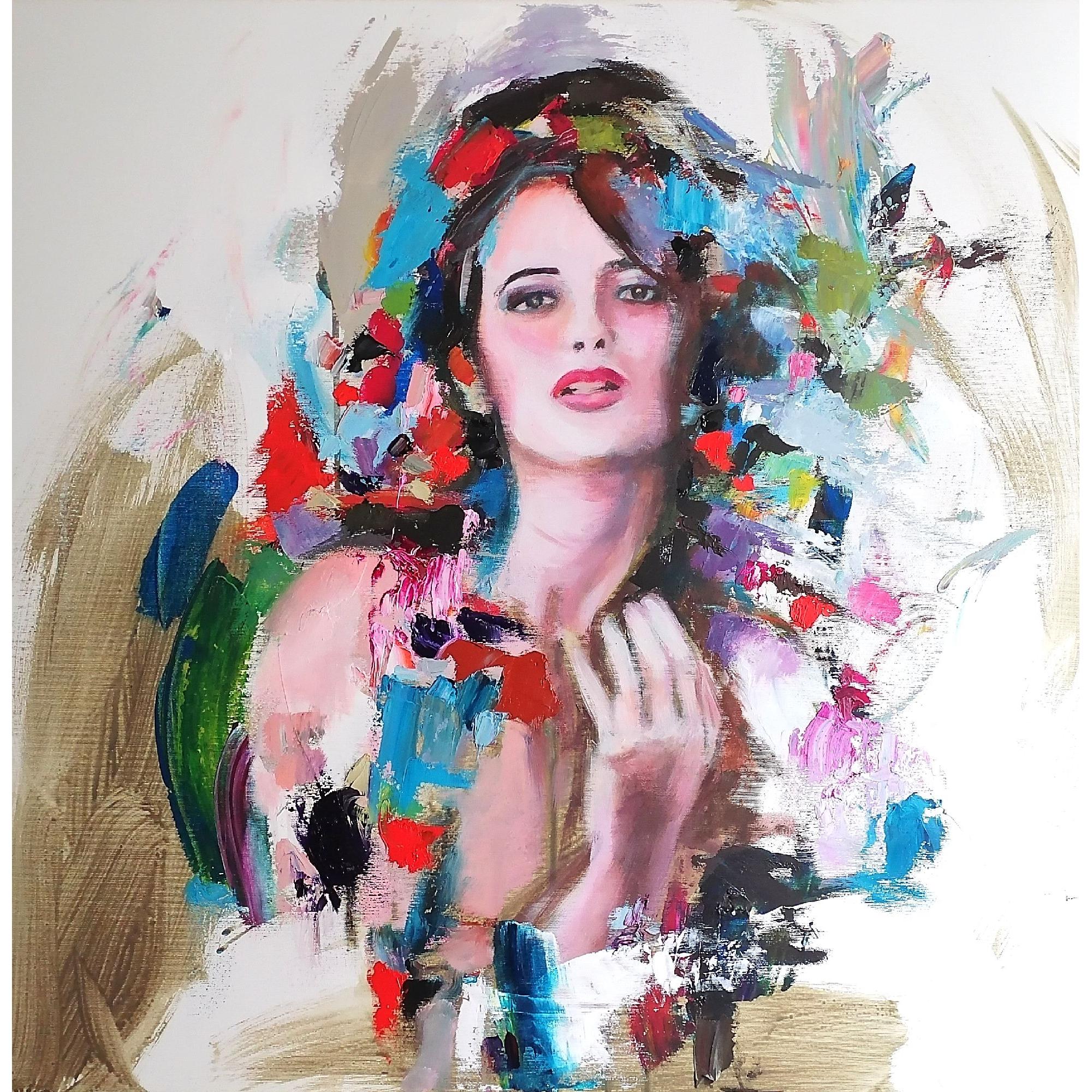 L'opera è realizzata in acrilico e olio su tela, con certificato di autenticità e firma sul retro.